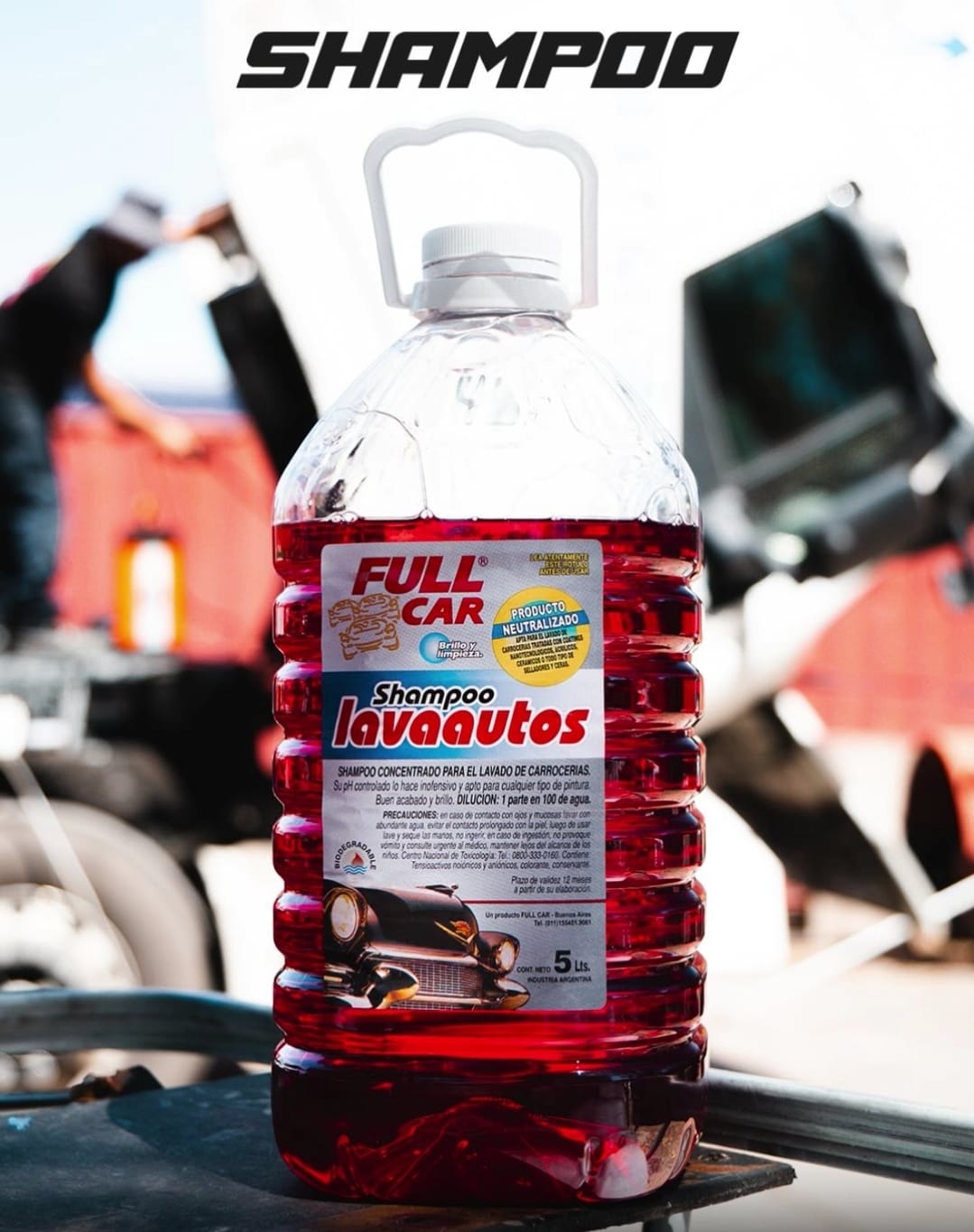 Bidon Lava Autos (shampoo – espuma) x 5 ltrs (DILU. 1L/100L) – FUL 024 FULL CAR ( LIMPIEZA – CARROSERIAS- simil k78 a801 – k78 a803 – k78 a805)(Shampoo concentrado neutro para el lavado de carrocerías,Buen acabado y brillo.Biodegradabilidad del 91%Dilución para el uso: 1 parte en 100 de agua.)