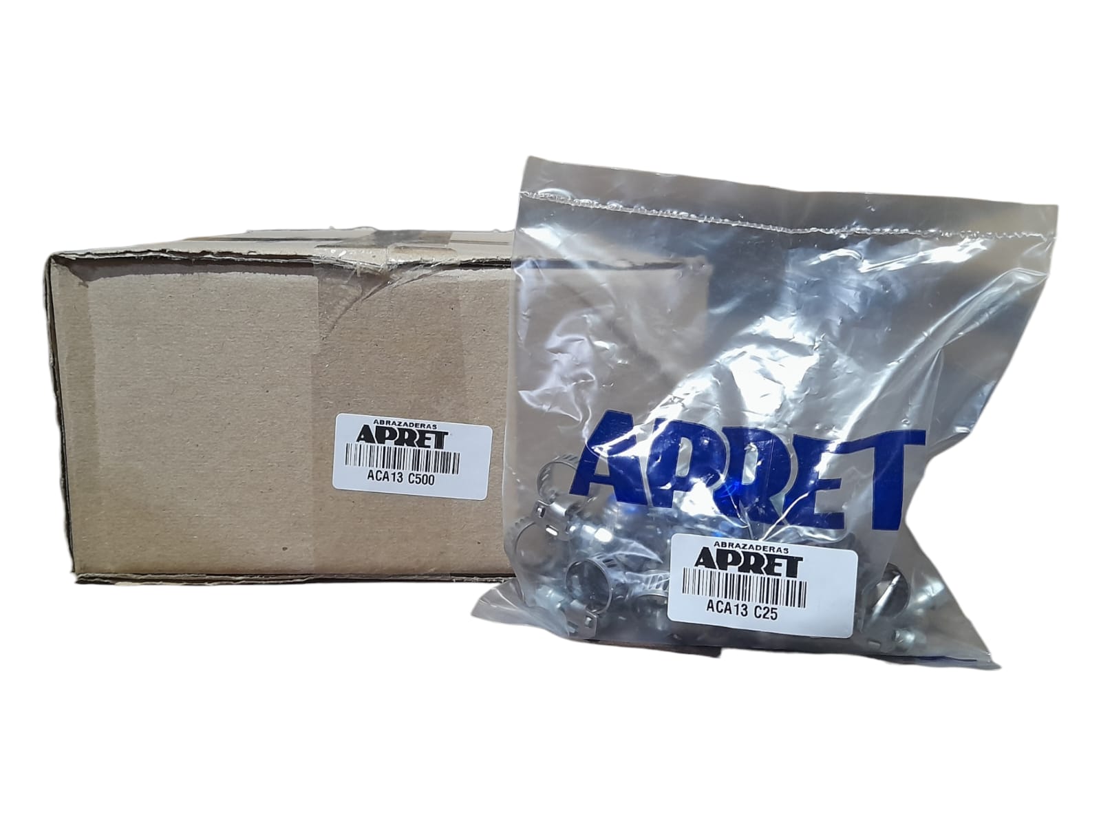 PROMO CAJA X 20 bolsas x 25 unidades (500 abrazaderas) ABRAZADERA SERIE ACA AMERICANA ANGOSTA 13/10mm. – ACA 13