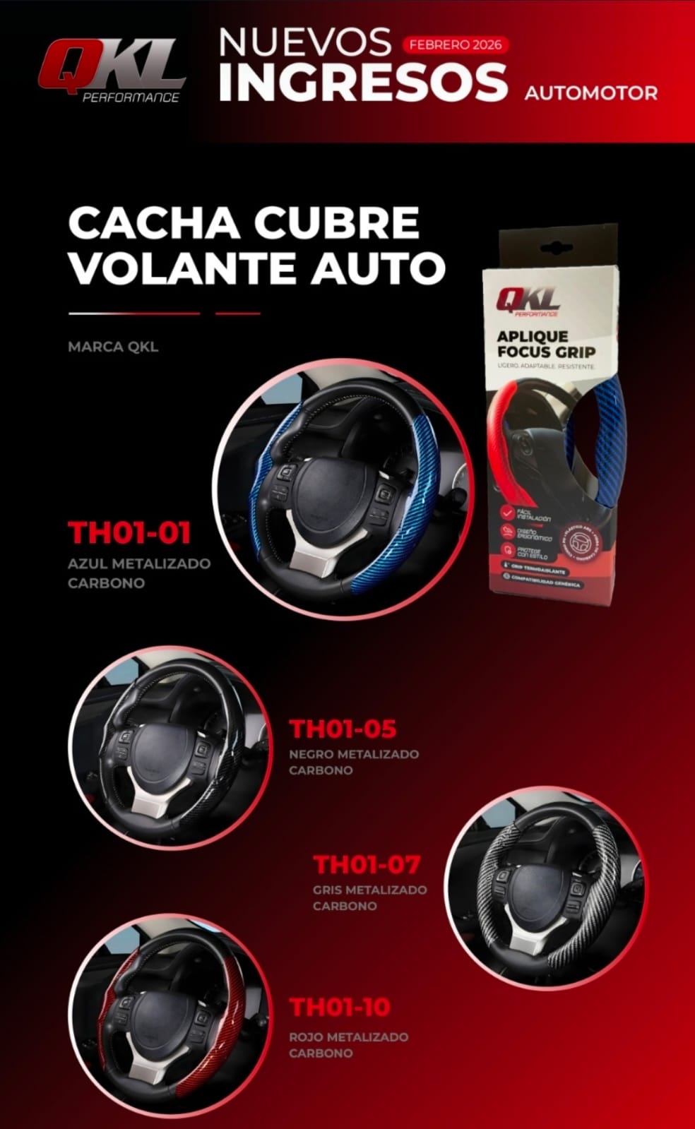 (CACHA) CUBRE VOLANTE AUTO AZUL METALIZADO CARBONO QKL – QKL TH01-01