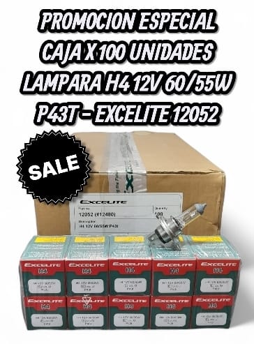 CAJA X 10 PACK X 10 UNIDADES (TOTAL 100 LAMPARAS ) LAMPARA EXCELITE 12052 H 4 12VOLTS TIPO Halogena 60/55W -P43T-38 – EX 12052 (similar lamp12h4p43t)