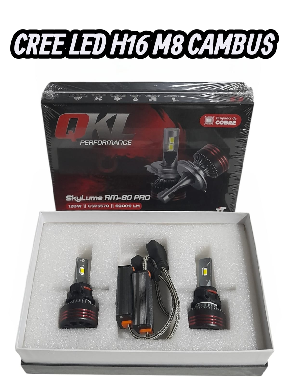 (CAJA X JUEGO DE 2 UNIDADES) KIT CREE LED M8 CON CAMBUS -H16 – H16 12/24V – L500-H16