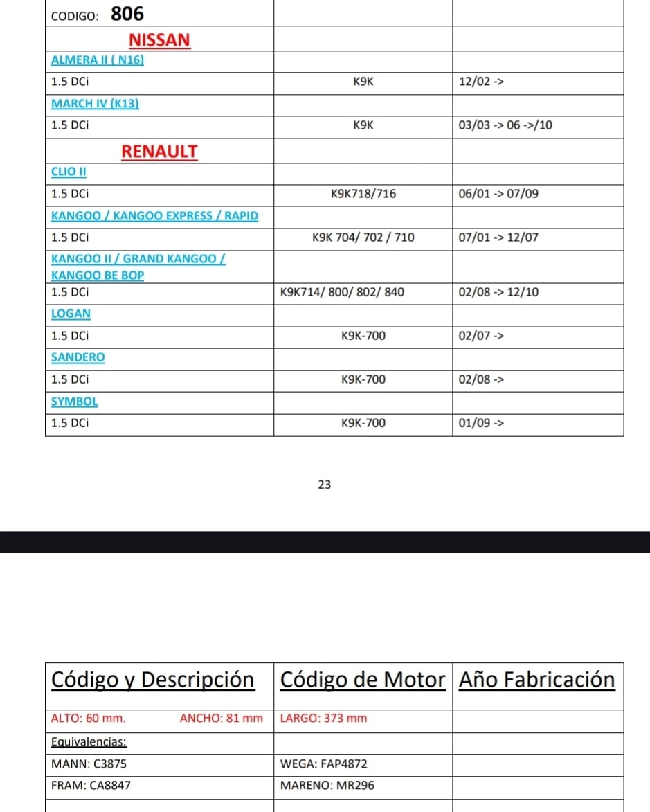 | 1.5 DCi | K9K-700 | 01/09 -> |