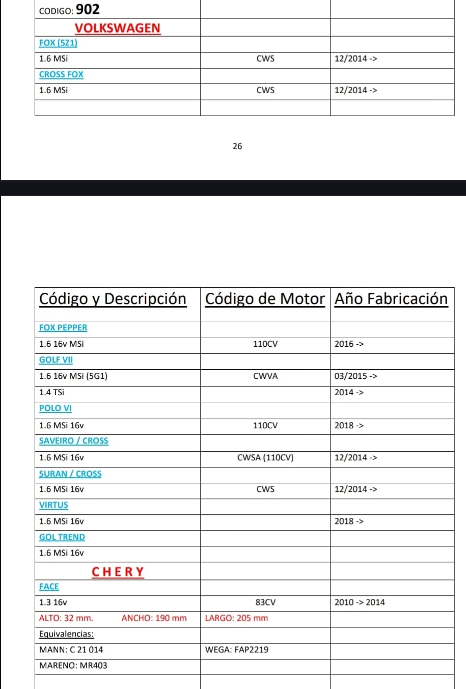 PROMO FILTROS DE AIRE NEW FILT CON CAJA TIPO PANEL VOLKSWAGEN SURAN MSI / FOX (5Z1)/ GOL TREND MSI / SAVEIRO 12-2014 – AIPA 902E ALTO: 32 mm. ANCHO: 190 mm LARGO: 205 mmEquivalencias:MANN: C 21 014 WEGA: FAP2219MARENO: MR403 EMAFI: EAM 2096
