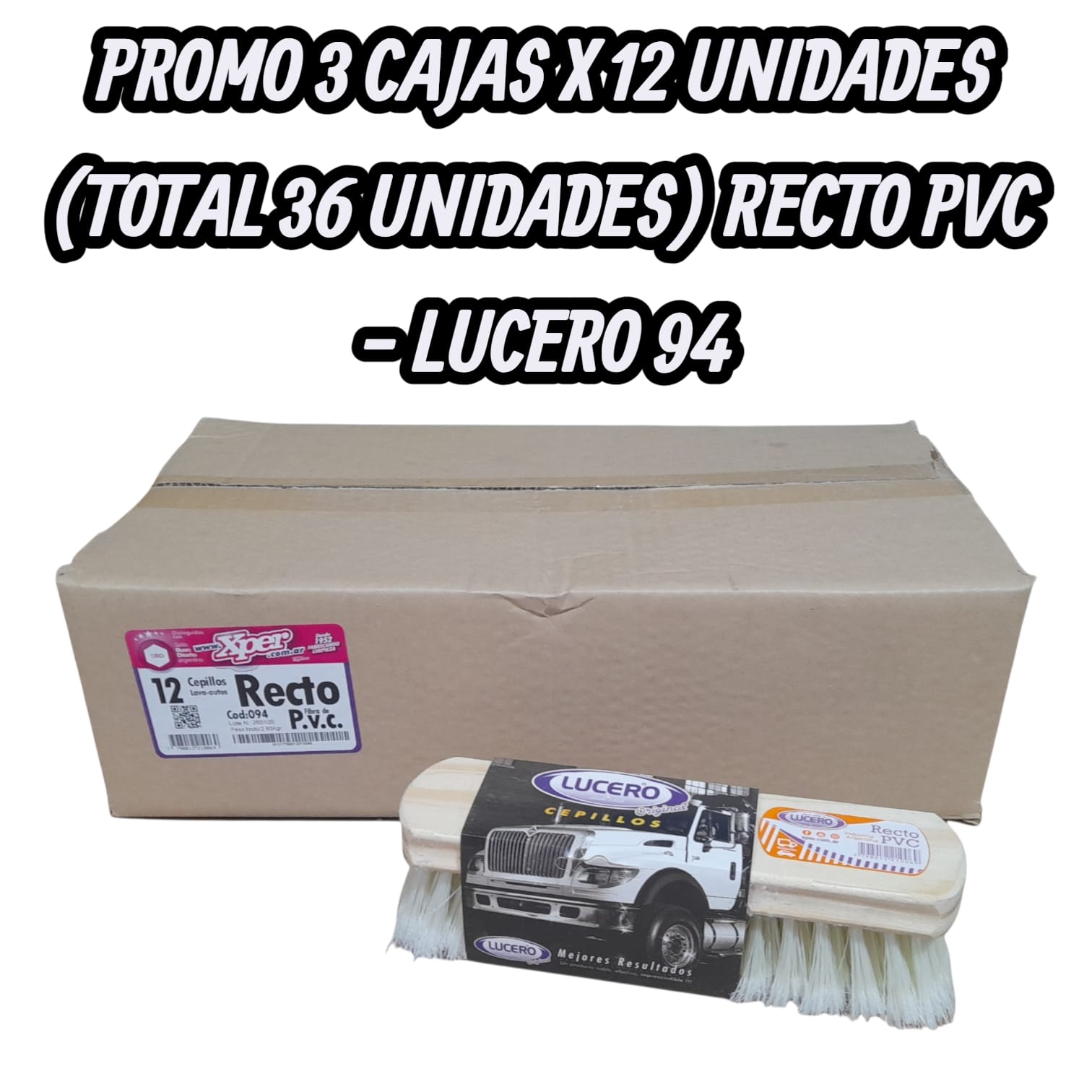 PROMO 3 CAJAS X 12 UNIDADES (TOTAL 36 UNIDADES) RECTO PVC Cepillo de lavado 23CM ( Cepillo Madera Recto, lavauto, Fibra Pvc 11cm Marfil.) – LUCERO 94
