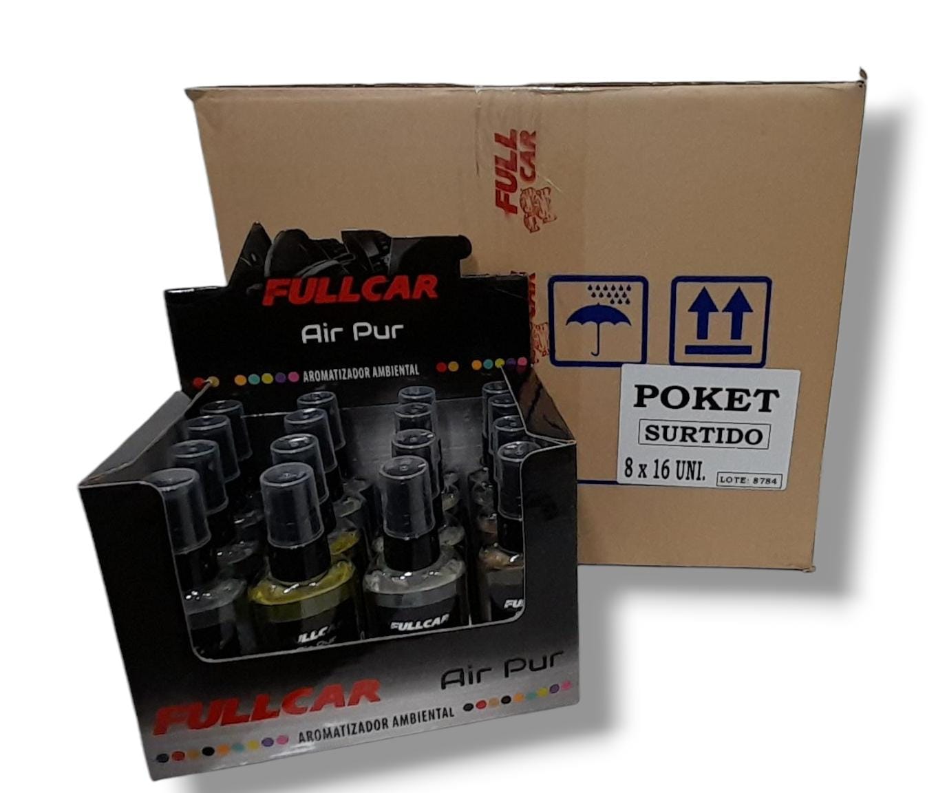 PROMO CAJA MADRE X (8 CAJAS EXHIBIDORAS X 16 UNIDADES) (TOTAL 128 UNIDADES ) CAJA EXHIBIDORA X 16 UNIDADES PERFUME (AROMATIZADOR) AIR PUR POCKET X 60 CC – FUL 630 – FUL 621 FULL CAR (SIMIL K78 101 – K78 102 – A3680/21