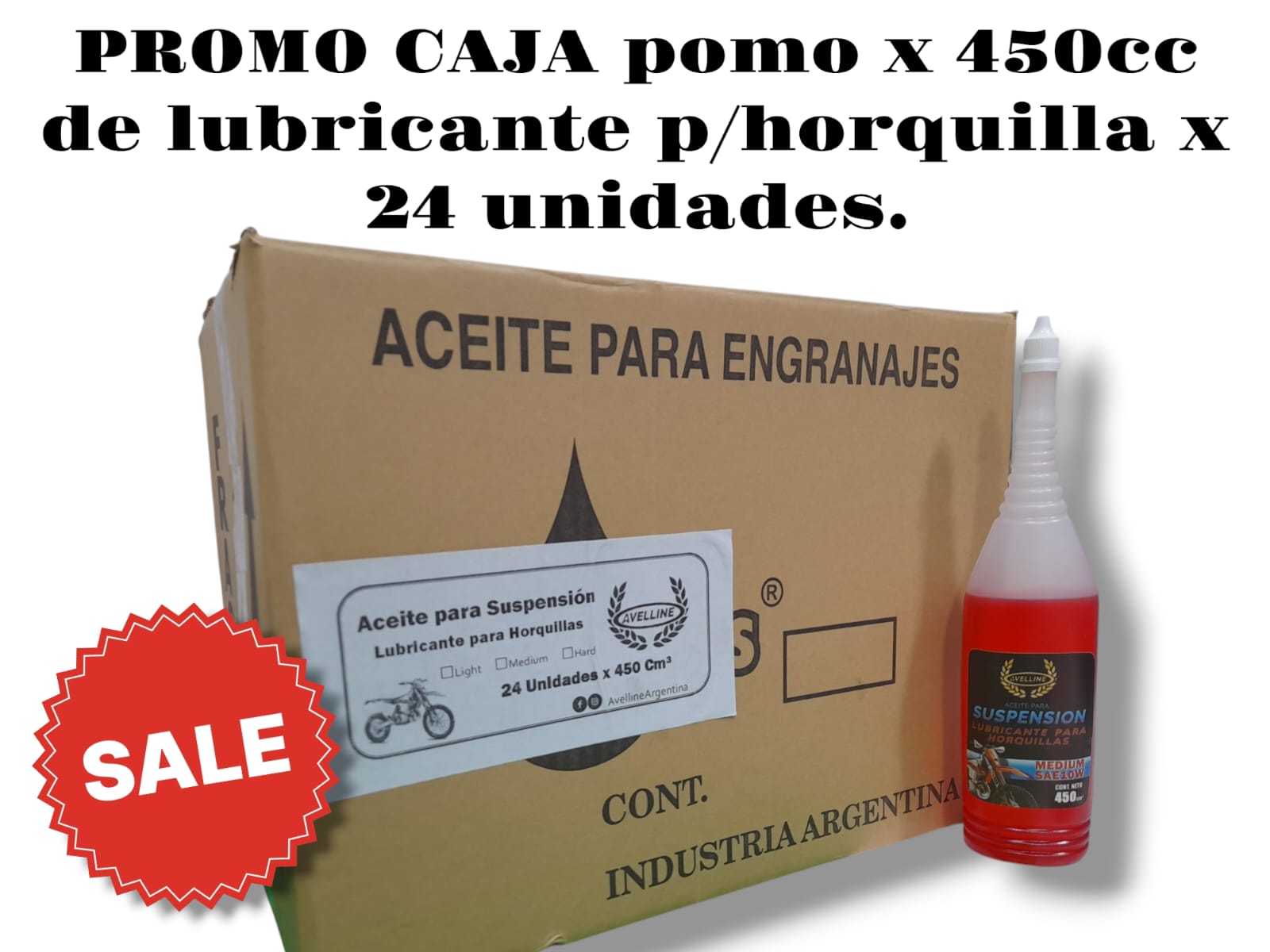 PROMO CAJA X 24 UNIDADES ACEITE LUBRICANTE PARA HORQUILLA X 450 POMO – LUBMOT450P LUBRIGRAS (Aceite de suspensión horquilla demotosEl aceite de horquilla ayuda a que la moto amorti­güe de manera eficiente, evitando que ésta sufra con los golpes o desniveles de la calle. )