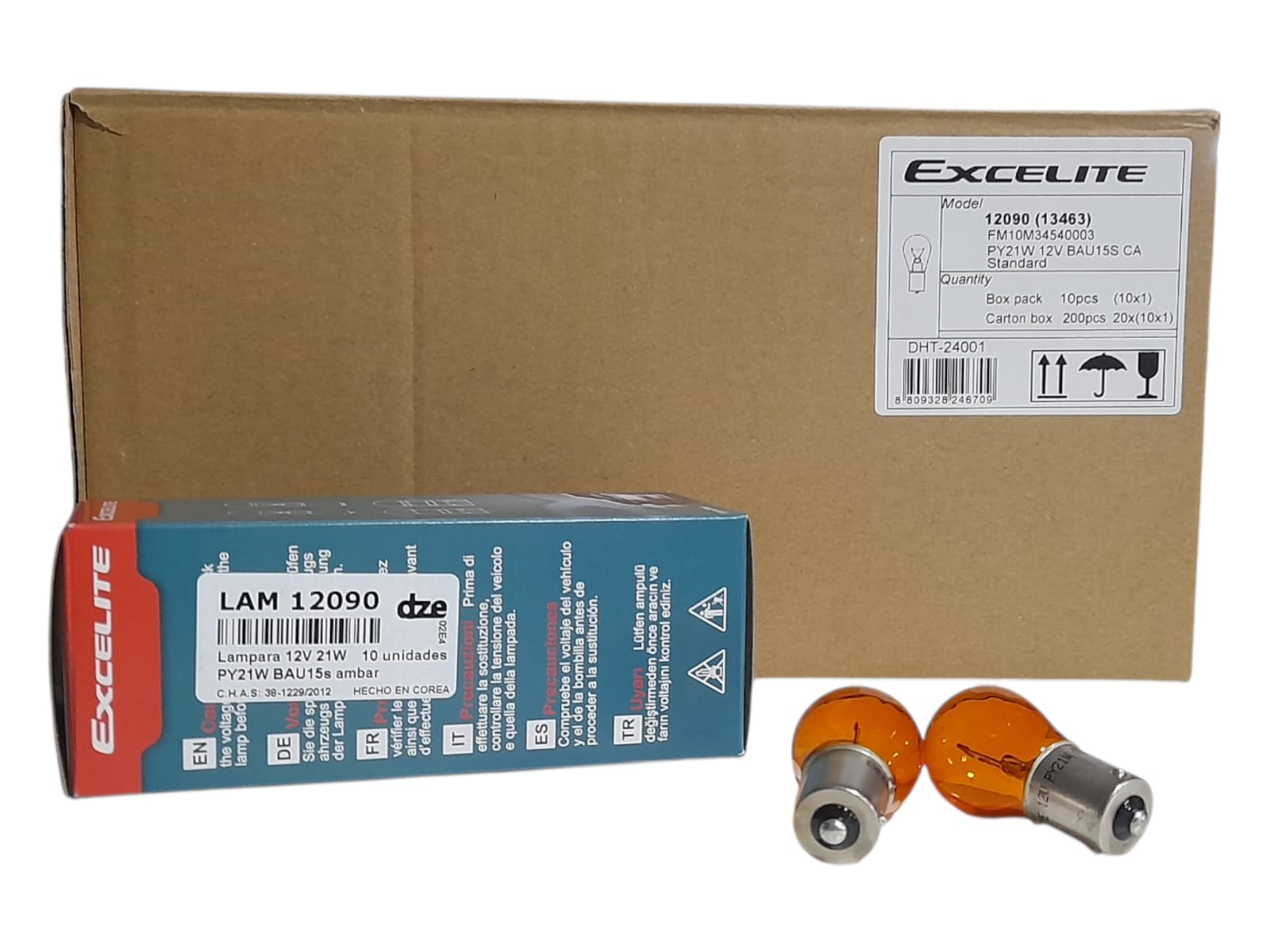 PROMO CAJA X 10 PACK X 10 UNIDADES (TOTAL 100 LAMPARAS ) LAMPARA EXCELITE 12090 PY 21 12VOLTS TIPO Señalización 21W -BAU 15S – EX 12090