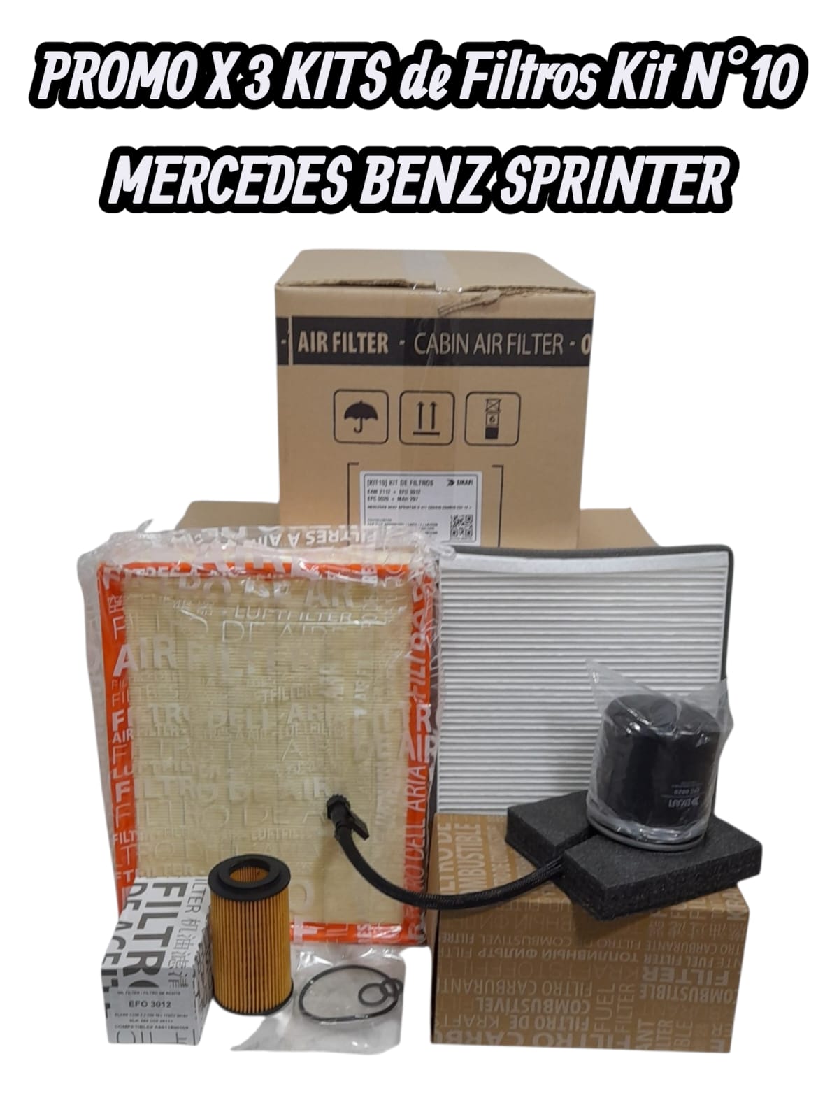 PROMO X 3 KITS Kit de Filtros N°10 MERCEDES BENZ SPRINTER 12>EAM 2112 + EFO 3012 + EFC 0020 + MAH 297